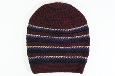 ちょっと残りの毛糸を集めて作る手編み帽 素材はWOOL系のMIX毛糸たち 意表をついた色合いは 'のとゆ' ならでは |