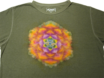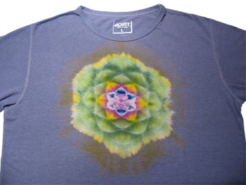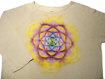| "Dead Dye" on Hemp Tee ・・・今回は、無限の可能性を秘めた《心の光》をイメージして、六芒星に染めて頂きました・・・ ★ ★ ★ ★ ★ ★ BodyはJoint, RightStuff, 共にHemp/Cotton, made in Japnです |