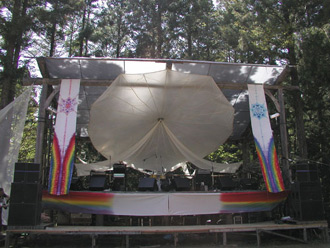 Garcia没後10周年に行われた 忍野DEADの様子。ステージにDead Dyeのレインボーフラッグ |
