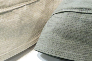 | モロッコさんのお手製ALLEN HAT 光沢のあるコットンギャバ de 短めブリムの新しいカタチ ツバをまるめてかぶったり屋内でもアピールできるお帽子です スベリ内側に隠れたドローコードで最大61cmまでのサイズ調整ができます |